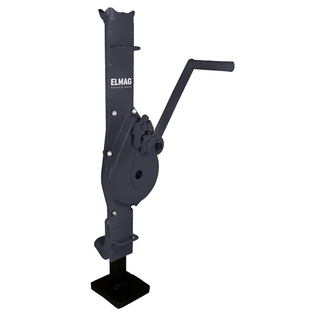 Mit fester Klaue · robuste Bauart zum Heben von Laster aller Art · Ritzel und Präzisions-Zahnstange aus Stahl geschmiedet · klappbare Sicherheitskurbel mit zwei Sperrklinken · geringer Kraftaufwand durch optimale Übersetzung · 100 % Hubkraft am Horn, 70 % auf der Klaue